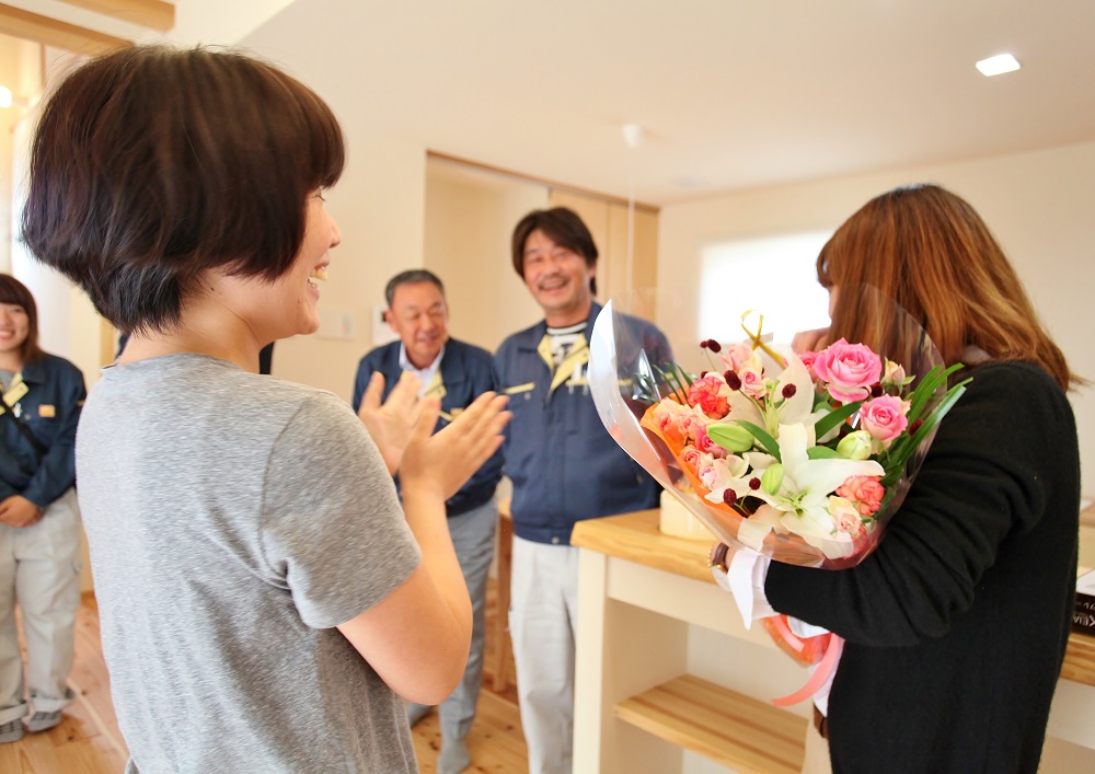 この住まいづくりに関わってきた沢山の人たちの手でバトンタッチを繰り返し、最後は私たちからご家族へ…。
