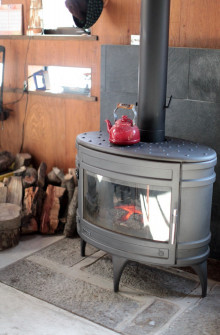 最初に案内されたのは薪ストーブが暖かい、アトリエのようなお部屋。