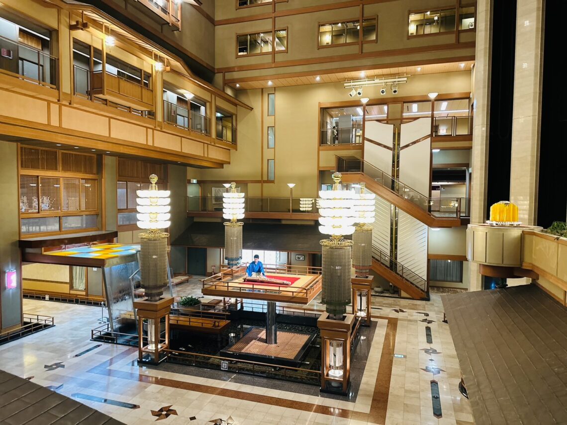 宿泊先の「母畑温泉 八幡屋」はプロが選ぶ日本のホテル旅館100選で毎年上位に選ばれる名旅館ともあり、雰囲気も温泉も最高でした。落ち着きのある和の空間と高い吹き抜け天井からやわらかな光が降りそそぎ、琴などの音色が広がるロビーは圧巻でした。温泉とおいしい料理に癒されて宴会も、とっても盛り上がり、笑いっぱなしの夜でした。
