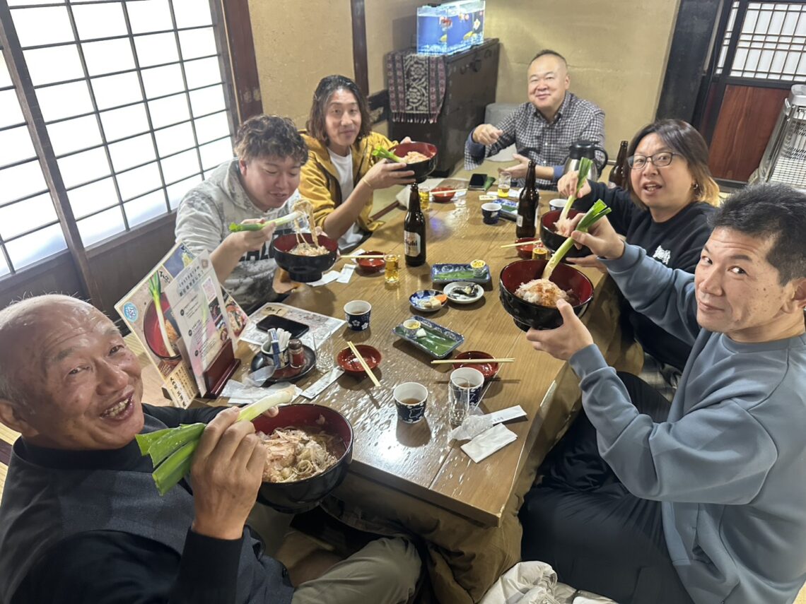 おひるは会津若松市にある渋川問屋へ。明治・大正の面影を残すお座敷のノスタルジックな雰囲気を楽しみながら、会津郷土料理と会津牛をいただき、みんな大満足。お腹も心もいっぱいになりました。