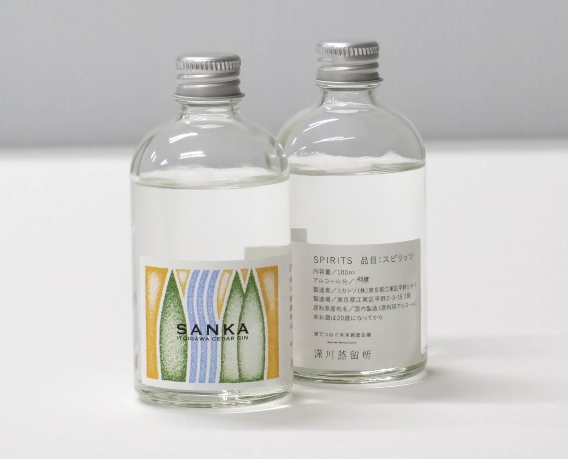 SANKA-廃材から、高付加価値の香りへ。糸魚川杉のクラフトジン「SANKA」は、糸魚川産の杉を製材する過程で出る枝葉やチップ材(C材)を中心に、小谷村産の朴葉(ほおば)をブレンド。さらにジュニパーベリーやベチバーといったボタニカルが香りを引き立て、まるで森の中にいるような爽やかな飲み口を実現しました。
