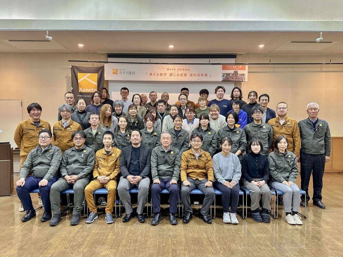 カネタ建設では、上期・下期の年2回、方針発表会を行っています。